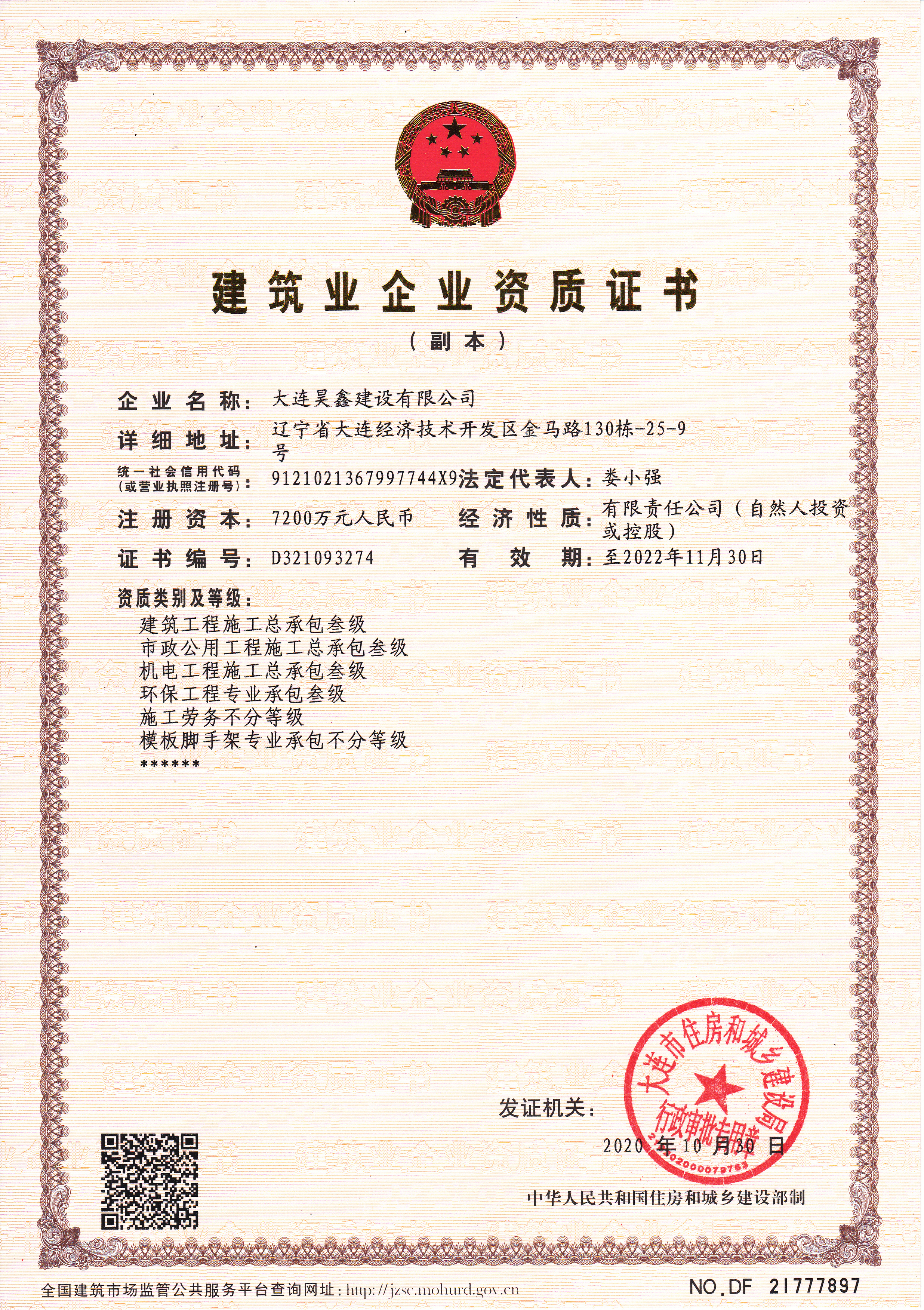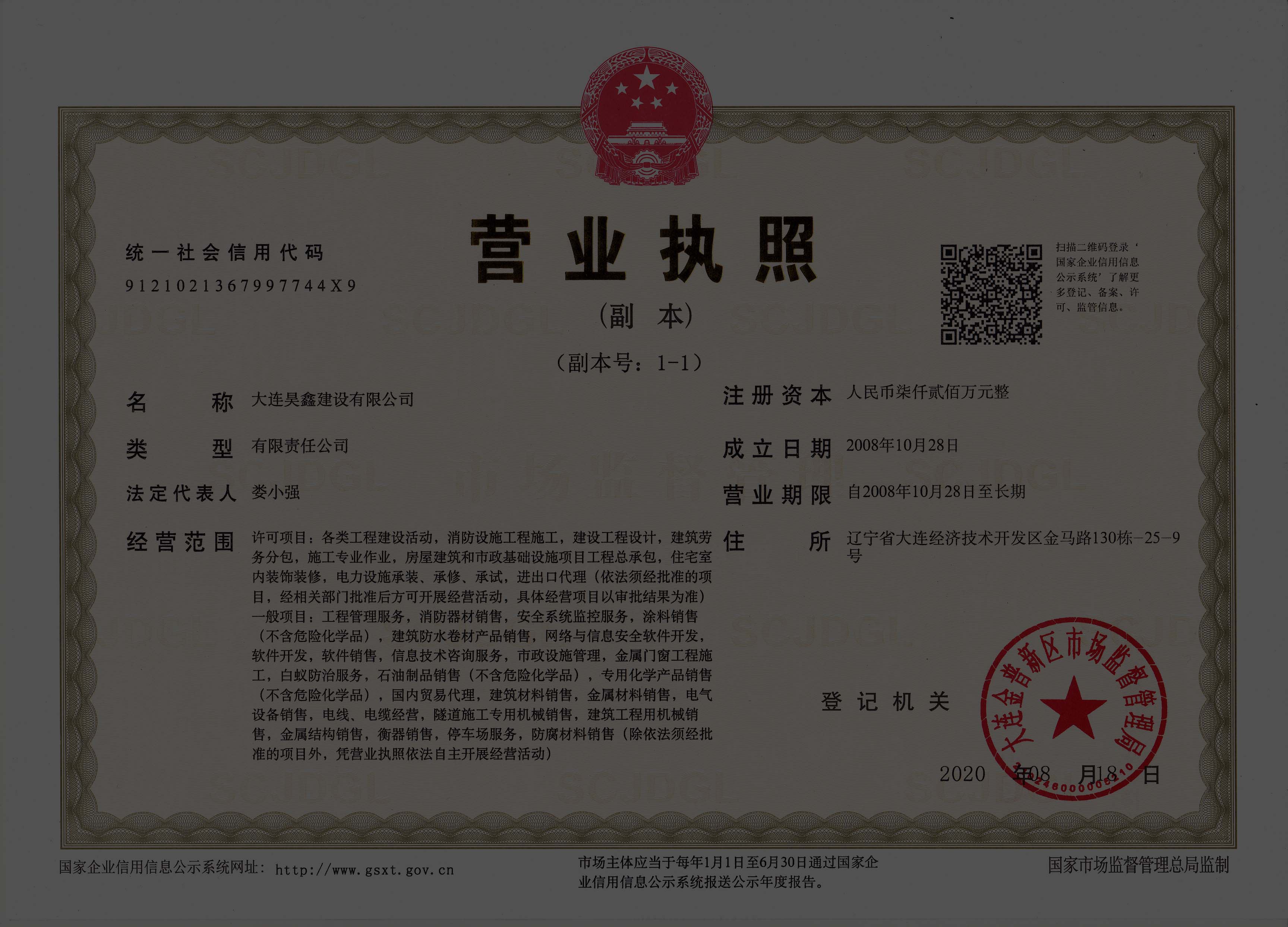 更名大連昊鑫建設(shè)有限公司