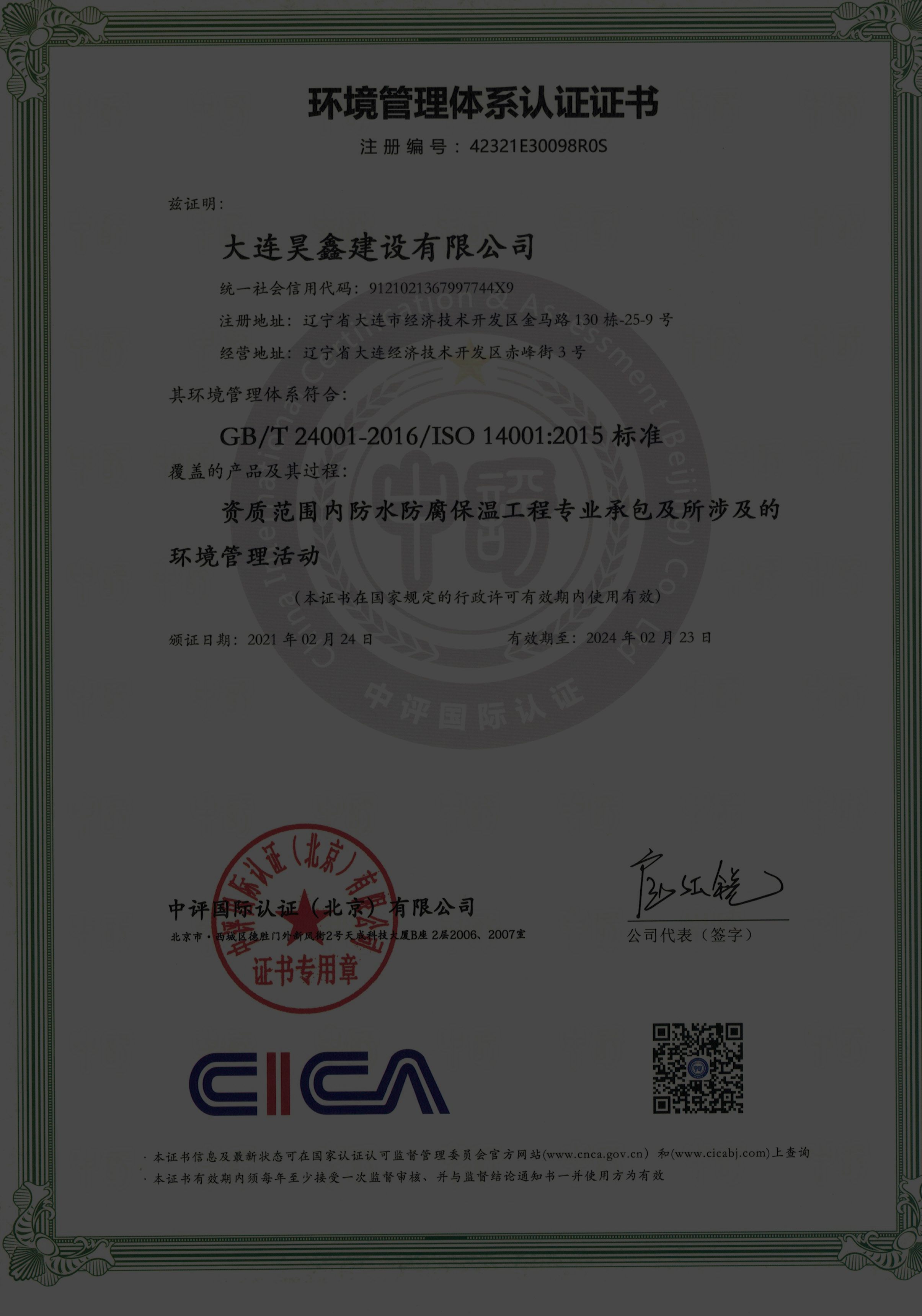 大連昊鑫建設(shè)有限公司珠海分公司。